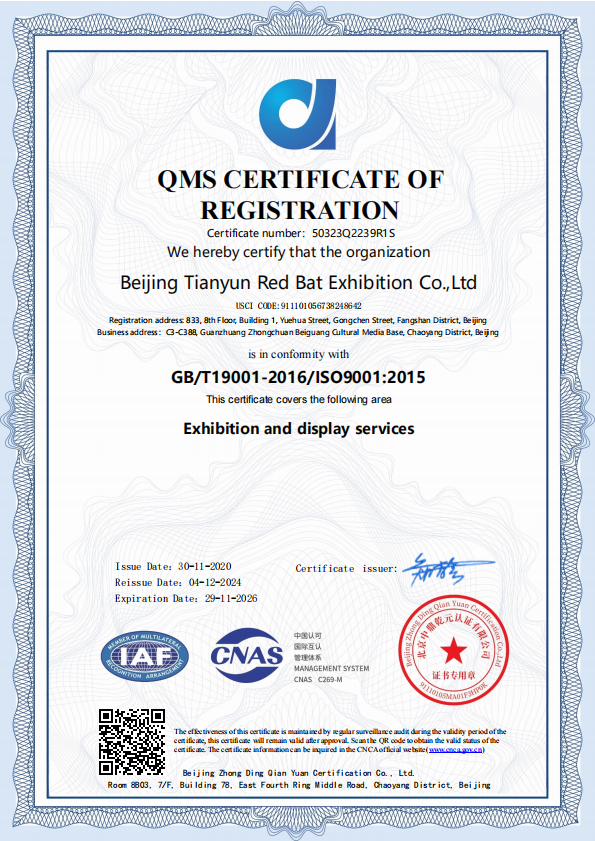 紅蝠展示致力于大型會(huì)展活動(dòng)的承辦、主場(chǎng)運(yùn)營(yíng)管理、展臺(tái)設(shè)計(jì)承建、數(shù)字化多媒體以及商業(yè)空間的全案塑造服務(wù)。我們以提供定制化服務(wù)為己任,力求改善提升企業(yè)品牌形象。今天,我們?cè)谥袊?guó)設(shè)立了9處分公司及制作加工工廠,和3處海外項(xiàng)目運(yùn)營(yíng)合作分支。主創(chuàng)設(shè)計(jì)由來(lái)自中國(guó)大陸及海外歸來(lái)的優(yōu)秀設(shè)計(jì)師、策劃師組成。并建立了完善的項(xiàng)目運(yùn)作與管理系統(tǒng),有效控制項(xiàng)目實(shí)施全過(guò)程的順利進(jìn)行,保障設(shè)計(jì)成果的完美實(shí)現(xiàn),積極分擔(dān)客戶在項(xiàng)目管理方面的精力投入。2015年我們獲得由中國(guó)展覽館協(xié)會(huì)頒發(fā)的:中國(guó)展覽工程施工一級(jí)企業(yè)資質(zhì),并通過(guò)了ISO9001質(zhì)量管理體系及ISO14001環(huán)境管理體系認(rèn)證。