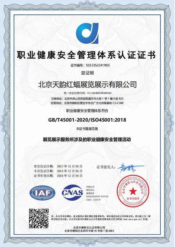 職業(yè)健康安全管理體系認(rèn)證證書