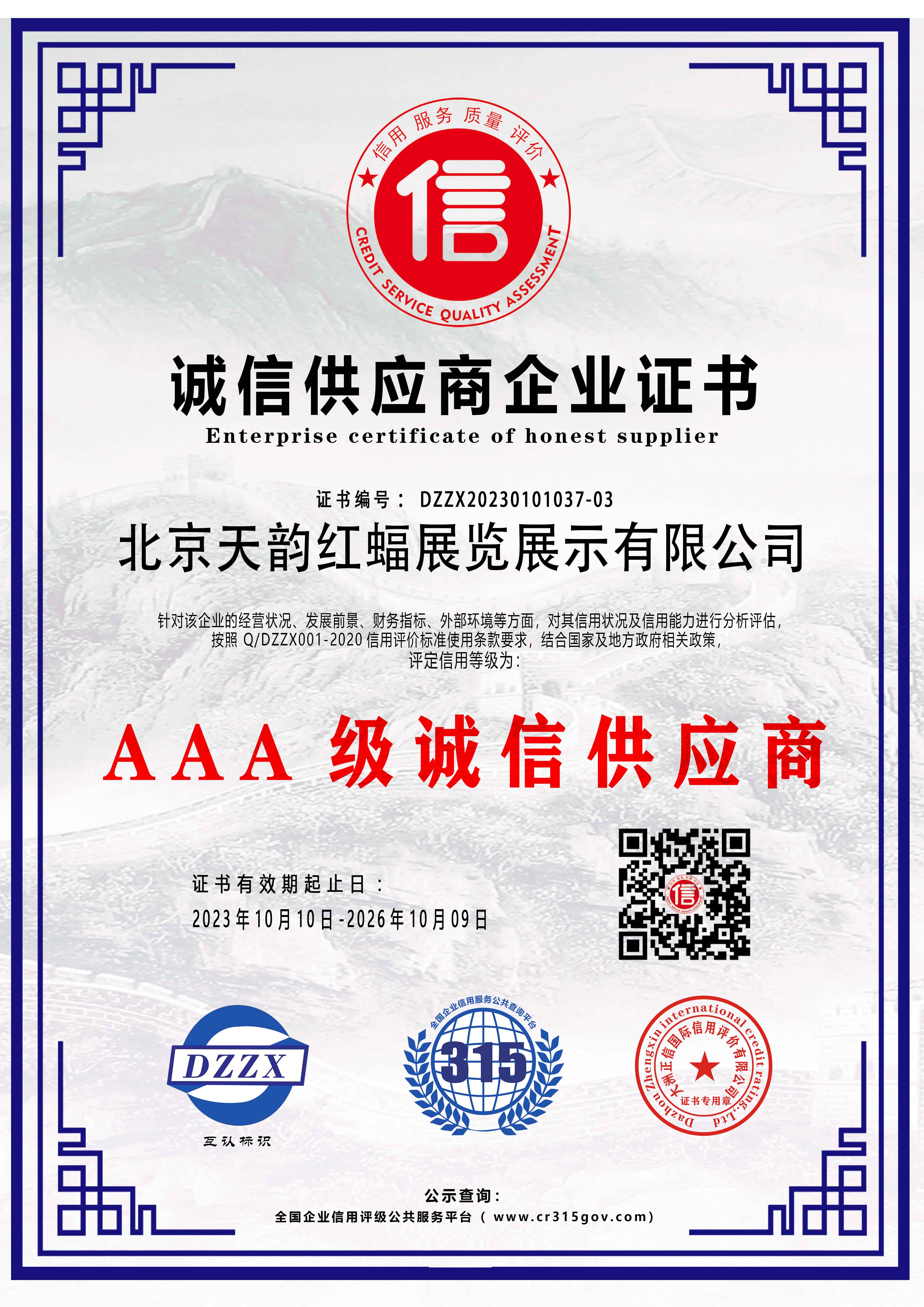 誠(chéng)信供應(yīng)商企業(yè)證書