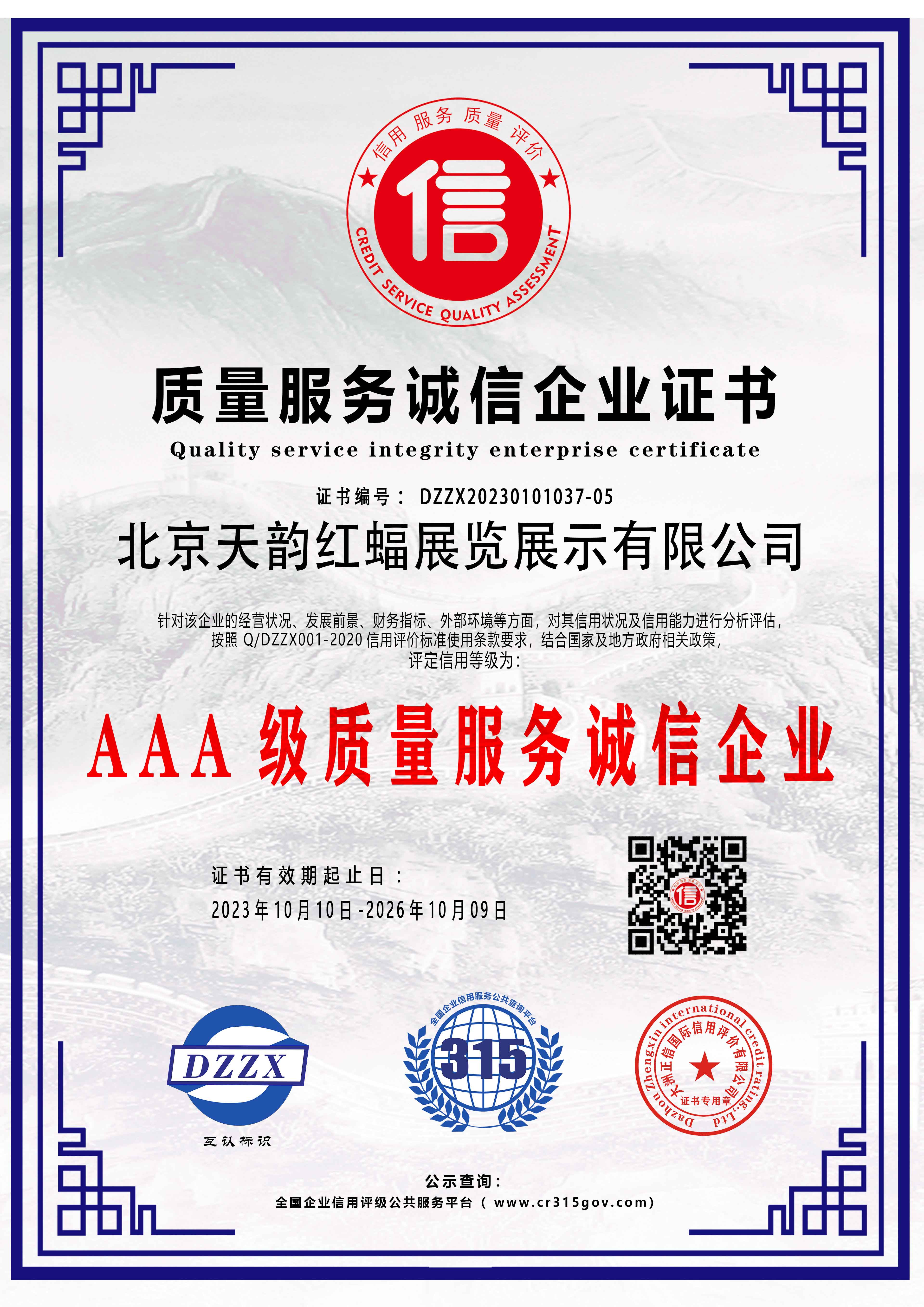 質(zhì)量服務(wù)誠(chéng)信企業(yè)證書