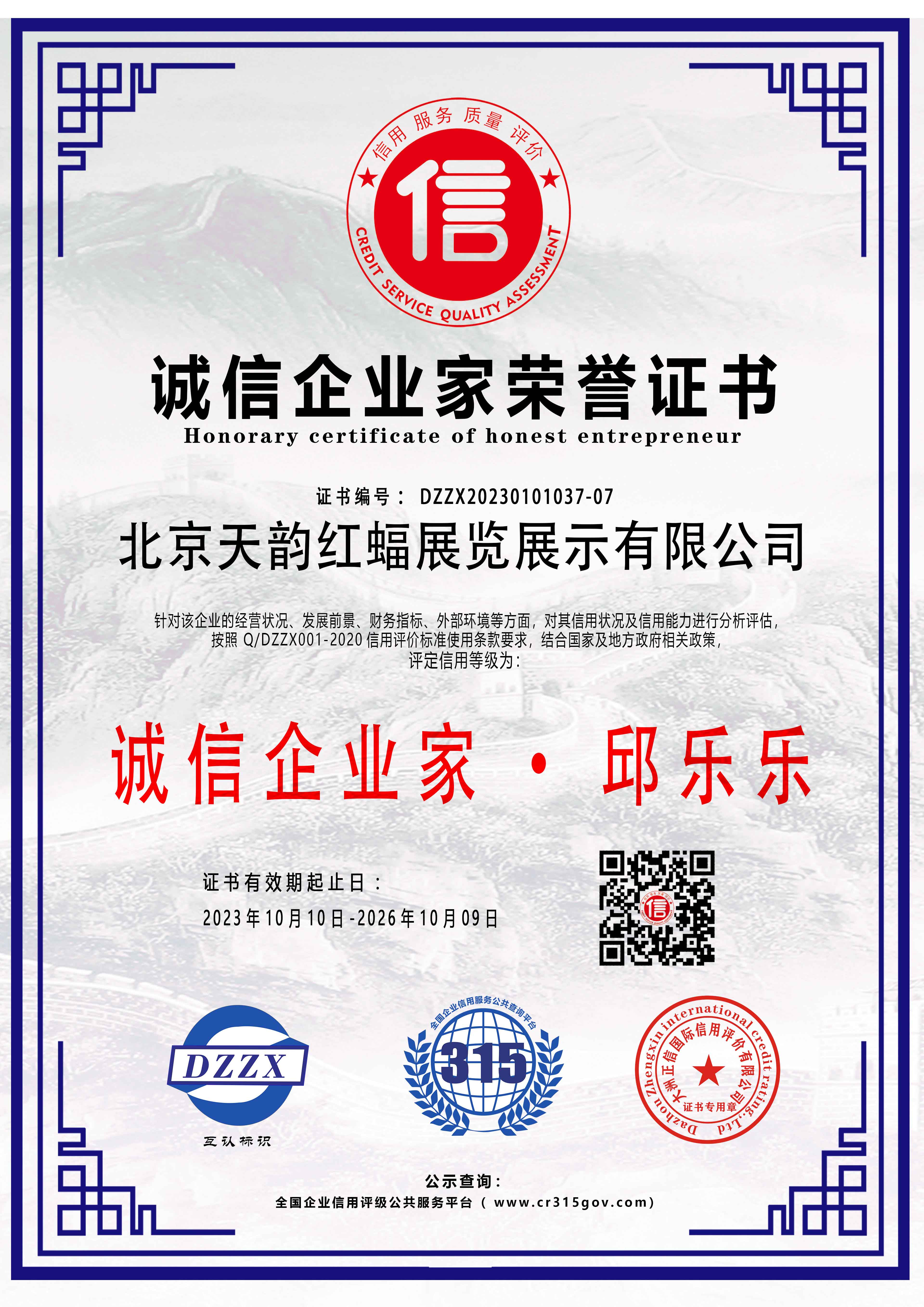 誠(chéng)信企業(yè)家榮譽(yù)證書