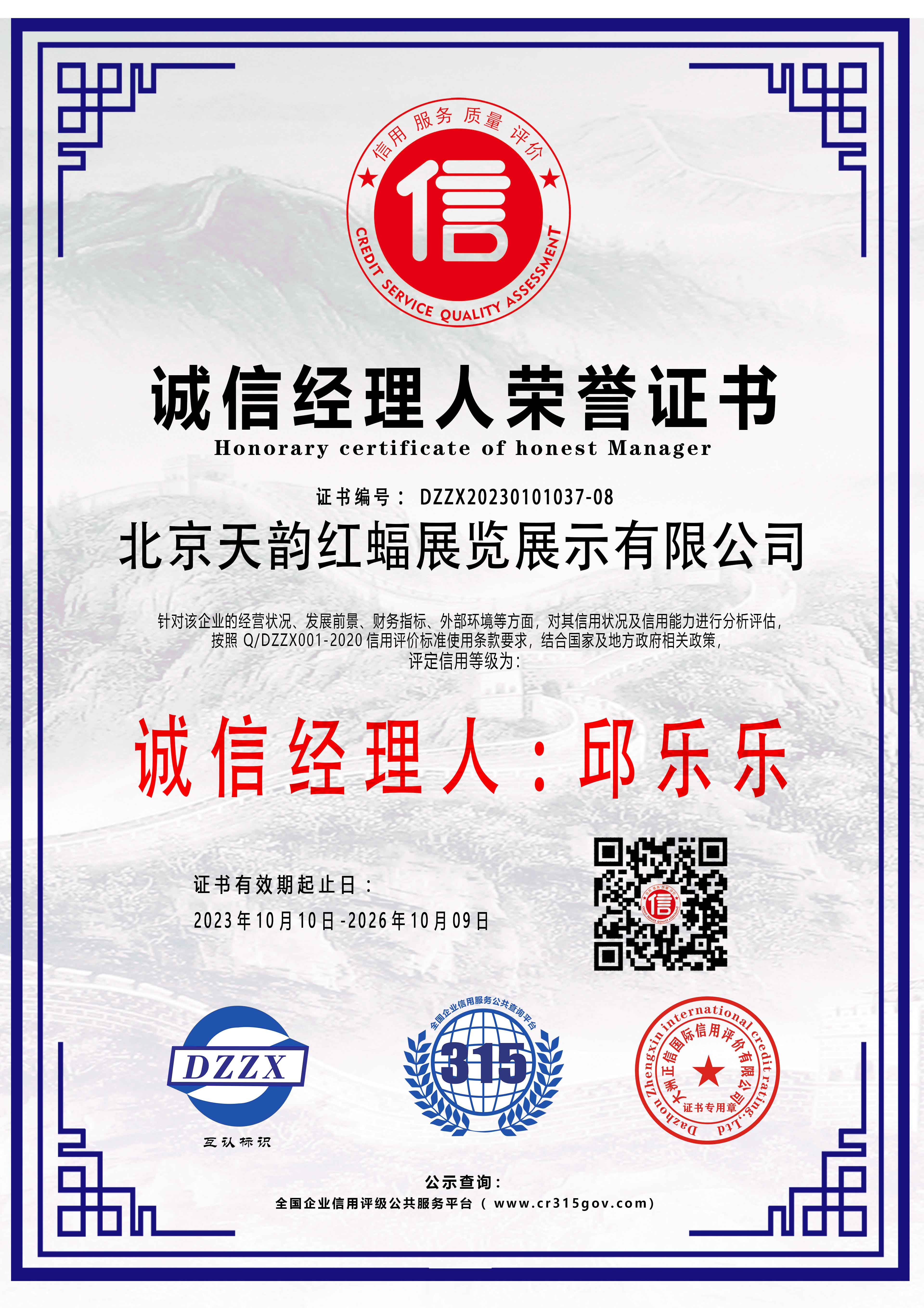 誠(chéng)信經(jīng)理人榮譽(yù)證書